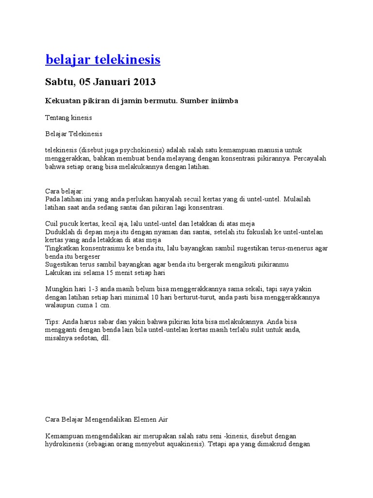 Tapi untuk lebih mempermudah para pengunjung saya akan tuliskan lagi urutan artikel telekinesis. Ini pengalaman pribadi sayadulu saya pernah mencoba melakukan telekinesis dengan cara berkonsentrasi selama 15 menit hanya ke pulpen dan ternyata benar saja saya merasa pulpen itu seperti goyang. Motivasi hidup sukses cara saya mempelajari semua hal dengan cepat duration. Baca juga pengertian telekinesis dan cara melatihnya. Mangde wira 25 mei 2017 1724 mngkin lbih mudah dengan cara belajar mengatur dam mengendalikan cakra tubuhkemudian. Cara pertama melatih telekinesis adalah menggunakan pulpen. Cara belajar ilmu laduni dengan cepat. Sebelum belajar telekinesis anda perlu tahu dulu apa itu telekinesis kemudian bagaimana persiapan untuk melakukan telekinesis dan hal hal yang penting untuk dipahami dalam telekinesis.