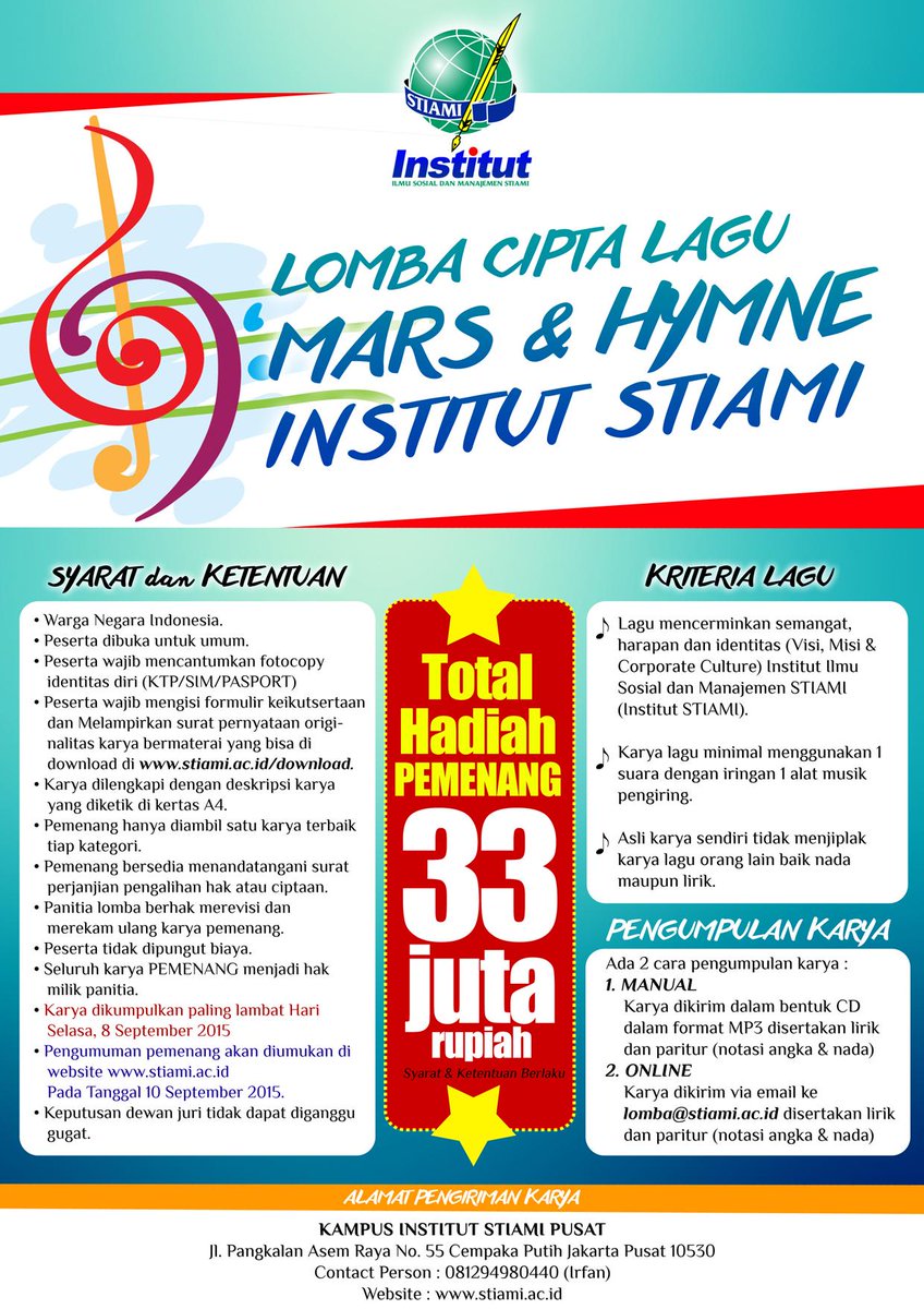 Sumber : stiami-sr1.blogspot.com Institut Stiami On Twitter Ikuti Lomba Cipta Lagu Mars Dan