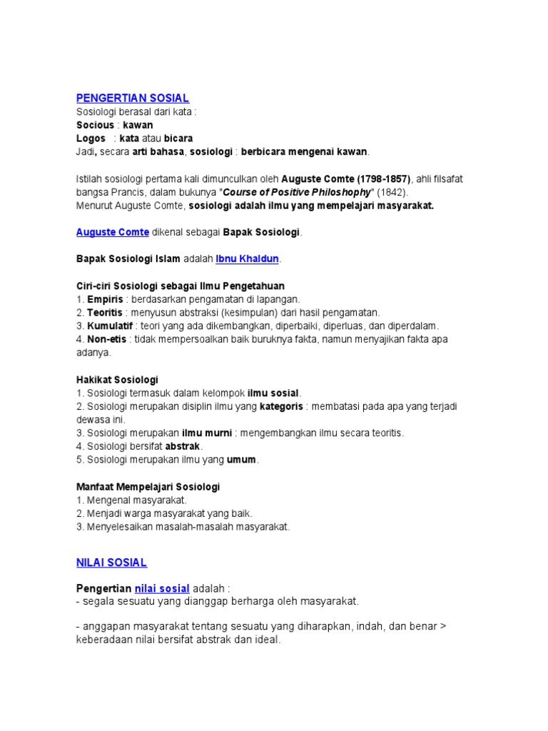 Sumber : scribd.com Pengertian Sosiologi Ciri Ciri Kedudukan Dan Fugsi