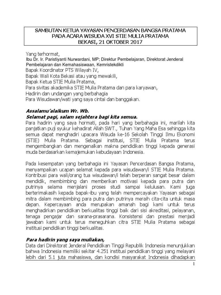 Sumber : es.scribd.com Sambutan Wisuda Viii 2008 2009 Ketua Stie Mulia Pratama