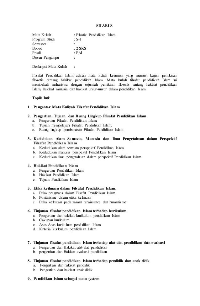 Sumber : cekkembali.com Silabus Filsafat Pendidikan Islam
