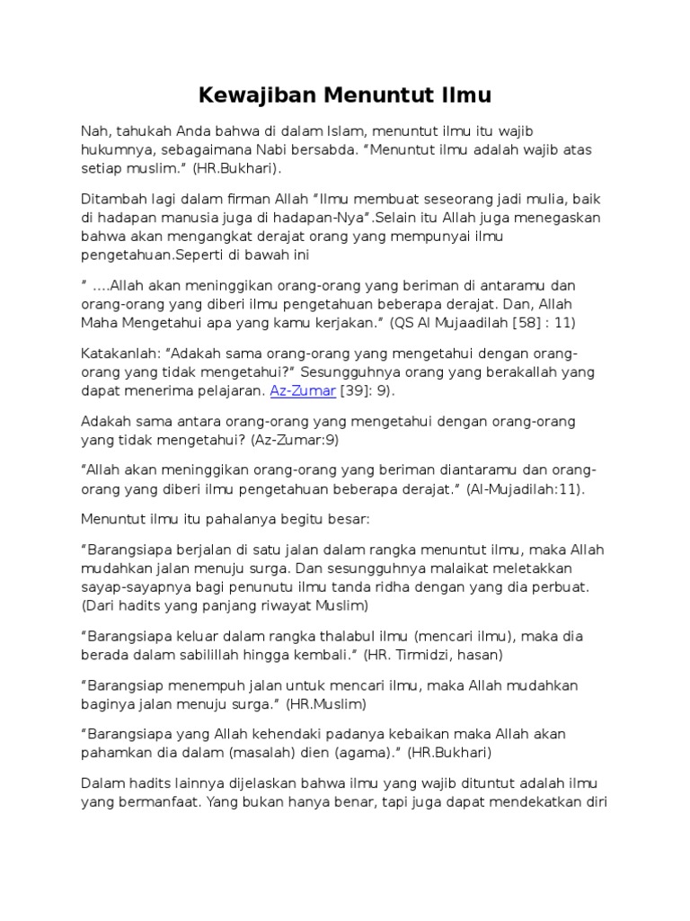 Hadits riwayat tirmidzi tentang menuntut ilmu. Seperti yang kita ketahui banyak hadits hadist nabi muhammad saw yang menjelaskan tentang keutamaan dan kewajiban menuntut ilmu. Hadits riwayat tirmidzi tentang keutamaan menuntut ilmu facebook twitter google linkedin stumbleupon tumblr pinterest reddit vkontakte share via email print nusagates. Home hadits hadits menuntut ilmu dalil al quran dan hadit tentang menuntut ilmu dalil al quran dan hadit tentang menuntut ilmu dalil al quran dan hadit mamfaat adab dan doanya tentang menuntut ilmu salah satu dari sekian banyak tanda datangnya hari kiamat adalah diangkatnya ilmu dari dunia. Hadits keutamaan mencari ilmu من خرج فى طلب العلم فهو فى سبيل الله حتى يرجع artinya. At tirmidzi dan ibnu majah. Tolong tulisin latinnya hadits tentang keutamaan menuntut ilmu h r 2 hadis menuntut ilmu doc 7 hadits tentang menuntut ilmu kewajiban menuntut ilmu hadist. Hadist menuntut ilmu kali ini akan dibahas tentang dalil hadits tentang menuntut ilmu lengkap lafadz arab dan artinya. Yang dimaksud faqih dalam hadits bukanlah hanya mengetahui hukum syari. Ini menjelaskan bahwa menuntut ilmu itu hukumnya wajib bagi setiap muslim. Hadits kewajiban dan keutamaan menuntut. Secara bahasa ilmu merupakan lawan dari kata عـلم يـعـلم.