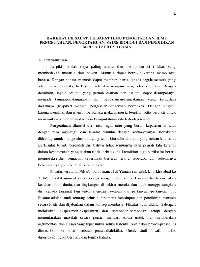 Jurnal Perbedaan Dan Persamaan Antara Ilmu Pengetahuan Filsafat Dan Agama. 47948642 Hakekat Filsafat Ilmu Pengetahuan Sains Biologi