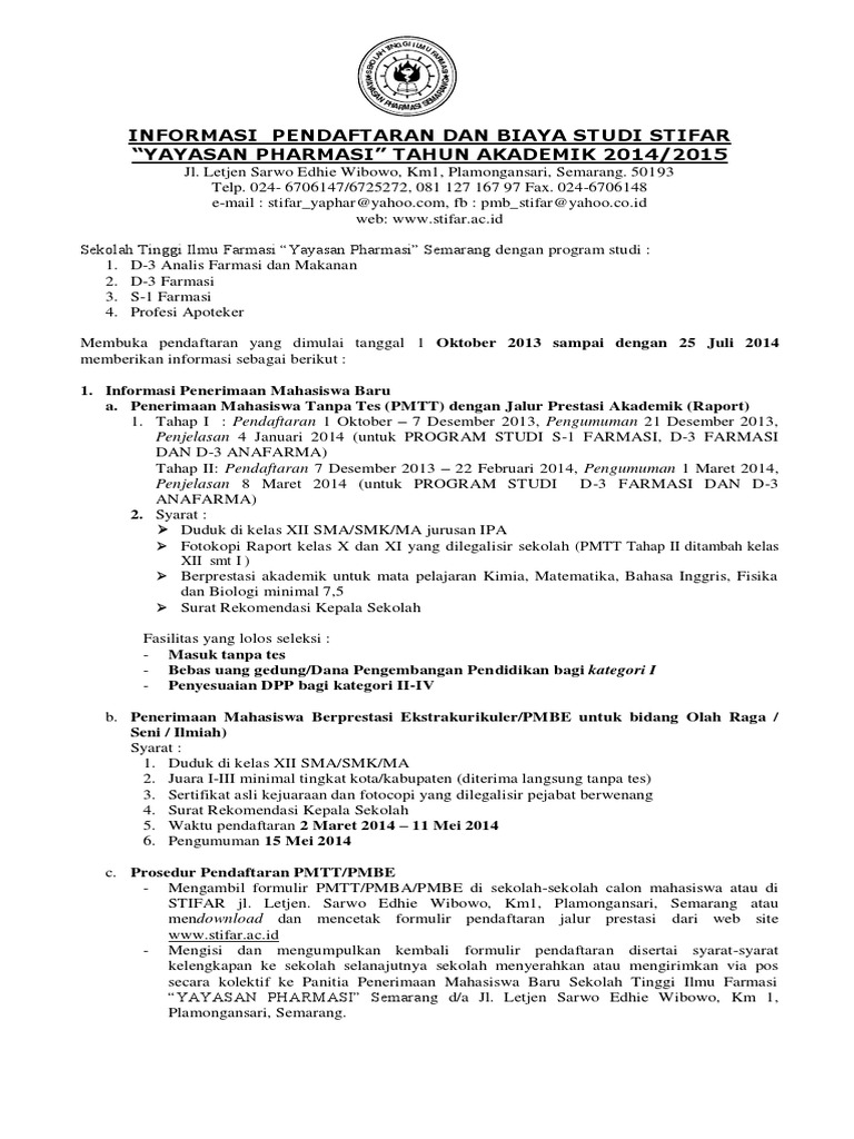 Sumber : sociviews.com 230516456 Info Pendaftaran Dan Biaya Studi Stifar 2014 2015pdf