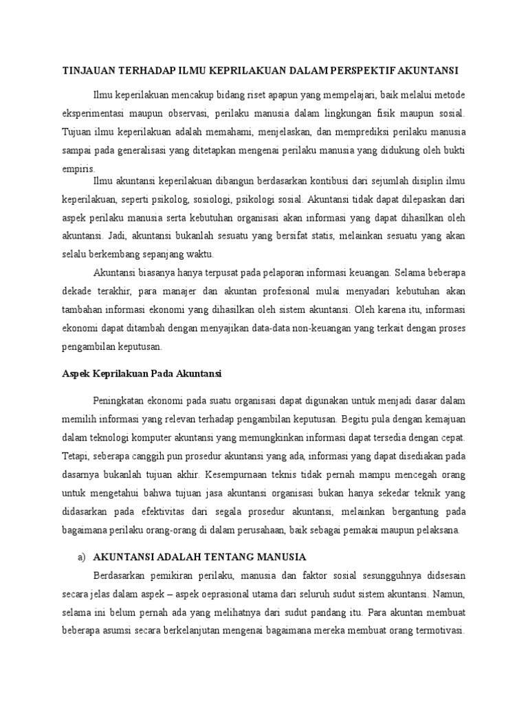 Tinjauan Terhadap Ilmu Keperilakuan Dalam Perspektif Akuntansi