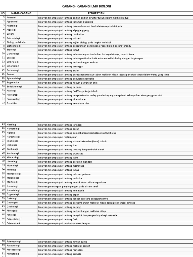 Sumber : writerumind.blogspot.com Cabang Cabang Ilmu Biologi Penek