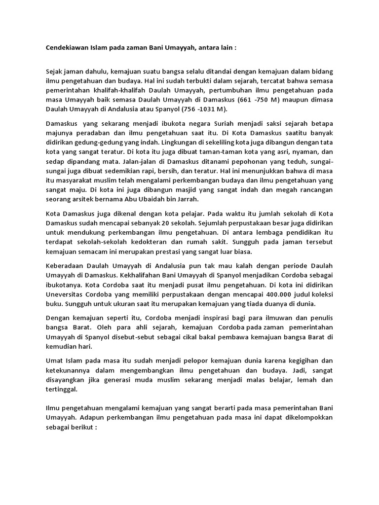 Gambar Pertumbuhan Ilmu Pengetahuan Pada Masa Umayyah. Cendekiawan Islam Pada Zaman Bani Umayyah