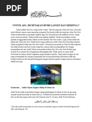Ilmu Makrifat Tertinggi Dari Segala Rahasia. Untuk Apa Diciptakan Bumi Langit Dan Seisinya