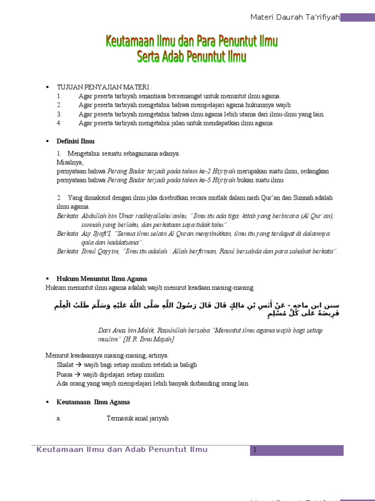 Data-data mengenai Menuntut Ilmu Wajib Bagi Setiap Muslim.