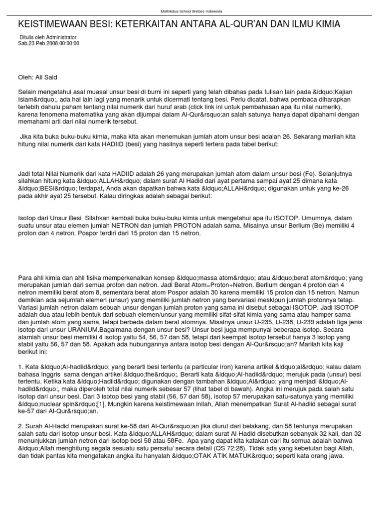 Sumber : acehinstitute.org Blog Mr Thio Ilmu Kimia Dalam Al Quran