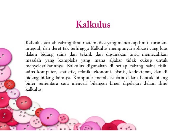 Berikut informasi sepenuhnya tentang cabang ilmu matematika yang mencakup limit turunan integral. Admin blog Terkait Ilmu 2019 juga mengumpulkan gambar-gambar lainnya terkait cabang ilmu matematika yang mencakup limit turunan integral dibawah ini.