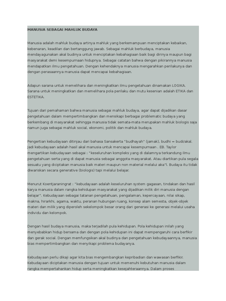 Sumber : slideshare.net Manusia Sebagai Mahluk Budaya