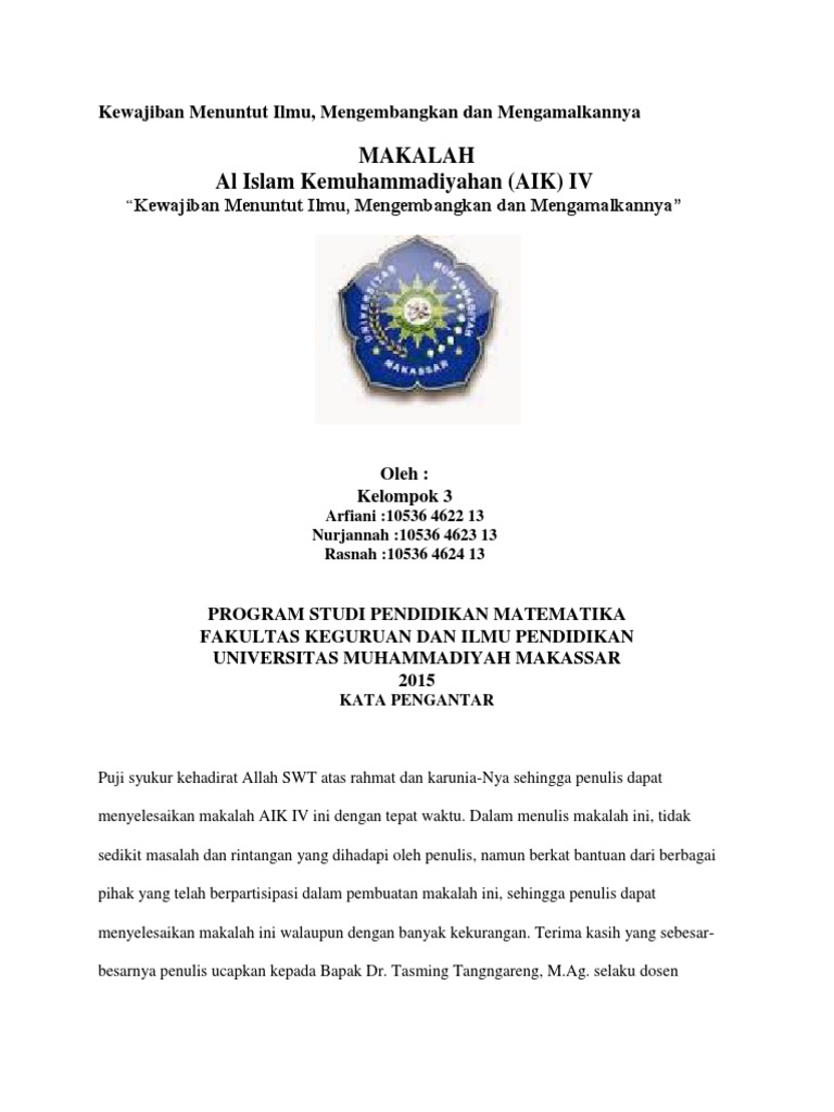 Sumber : dictio.id Makalah Agama Islam Menuntut Ilmu Pdf Document