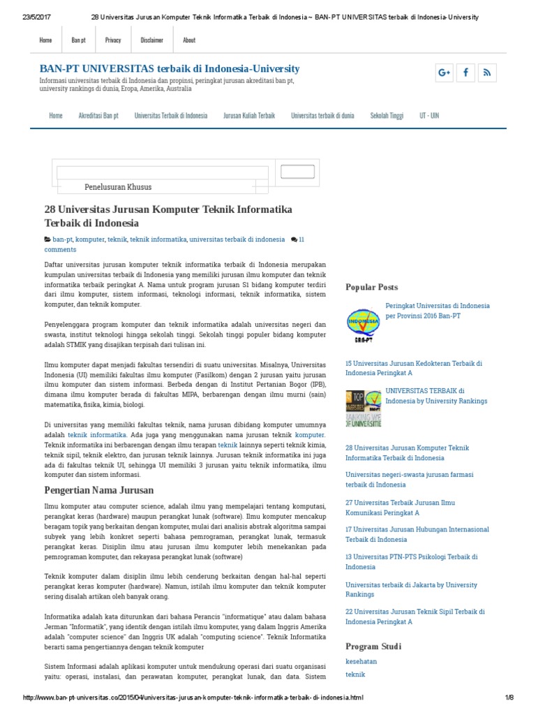 Sumber : studylibid.com 28 Universitas Jurusan Komputer Teknik Informatika Terbaik