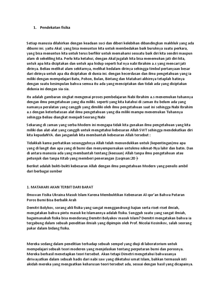 Bukti Bukti Kebenaran Al Quran Dari Segi Ilmu Pengetahuan. Agama No2 Dan 4pendekatan Fisikadocx