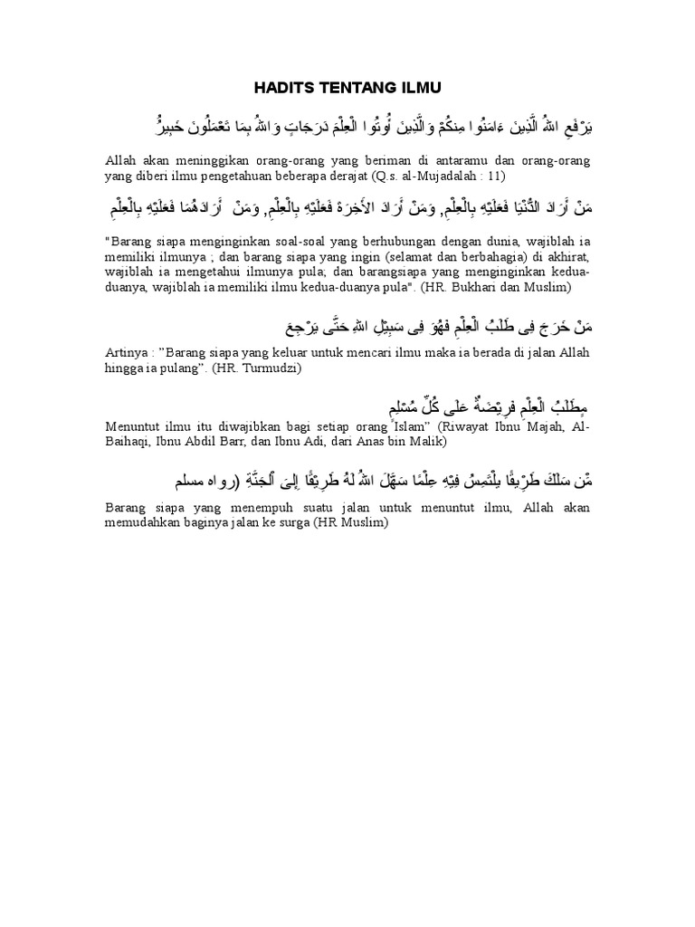 Sumber : academia.edu 40 Hadits Seputar Menuntut Ilmu 1 10 Al Muntaqa