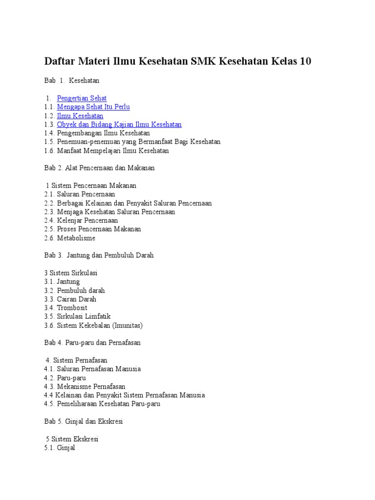 Sumber : slideshare.net Daftar Materi Ilmu Kesehatan Smk Kesehatan Kelas 10