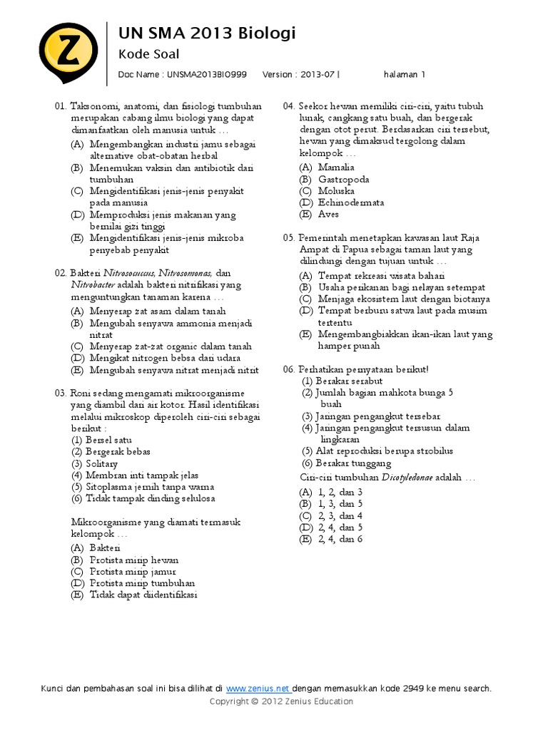 Sumber : dosenpendidikan.co.id Un Sma 2013 Biologi
