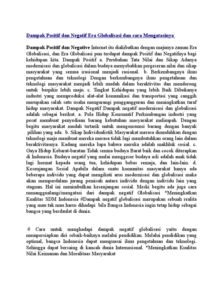 Sumber : blingjamong.wordpress.com Dampak Positif Dan Negatif Era Globalisasi Dan Cara