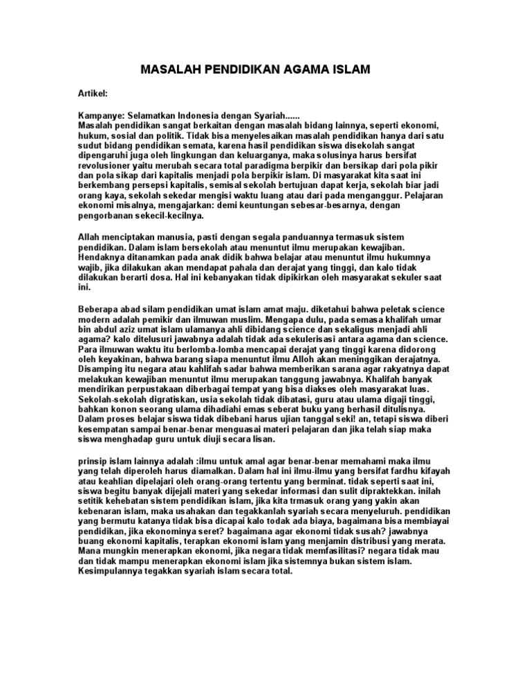 Sumber : ponpesukhuwwahislamiyyah.com Masalah Pendidikan Agama Islam