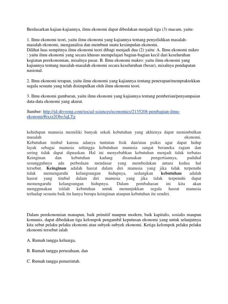 Sumber : studocu.com Pengertian Ilmu Ekonomi Dan Pembagiannya