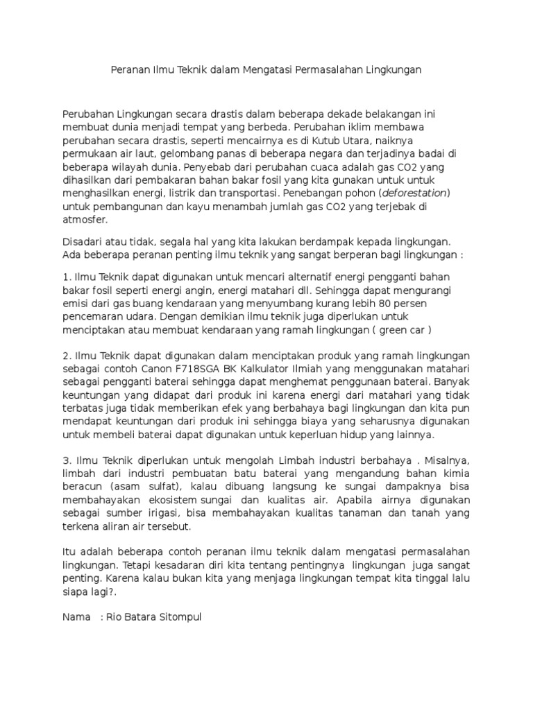 Ilmu kimia berperan dalam masalah lingkungan seperti limbah pabrik. Limbah cair bersumber dari pabrik yang biasanya banyak menggunakan air dalam sistem prosesnya. Limbah pertanian dihasilkan dari kegiatan tani dan perkebunan. Sebagian besar limbah udang berasal dari kulit kepala dan. Selain itu ada juga bahan baku mengandung air sehingga dalam proses pengolahannya air harus dibuang. Bahkan ilmu kimia juga dapat membantu menyelesaikan masalah sosial seperti masalah ekonomi hukum seni dan lingkungan hidup. Bagaimana cara pengolahan limbah berdasarkan teori dalam ilmu kimia. Bila air membawa limbah mengalir ke sungai danau atau sawah maka tanah akan teraliri sehingga akan terkontaminasi bahan bahan kimia. Limbah limbah pabrik tersebut dapat mencemari tanah air maupun udara yang pada akhirnya akan mencemari lingkungan baca. Fungsi lingkungan yang menjadi tempat tinggal makhluk hidup. Limbah reaktif adalah limbah yang memiliki sifat mudah bereaksi dengan oksigen atau limbah organik peroksida yang tidak stabil dalam suhu tinggi dan dapat menyebabkan kebakaran. Kegiatan pertanian juga menyumbangkan limbah untuk lingkungan.