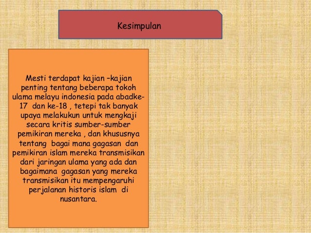 Inilah pembahasan selengkapnya mengenai makalah terbentuknya jaringan keilmuan di nusantara. Admin blog Terkait Ilmu 2019 juga mengumpulkan gambar-gambar lainnya terkait makalah terbentuknya jaringan keilmuan di nusantara dibawah ini.