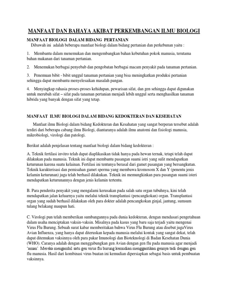 Sumber : academia.edu Manfaat Dan Bahaya Akibat Perkembangan Ilmu Biologidocx