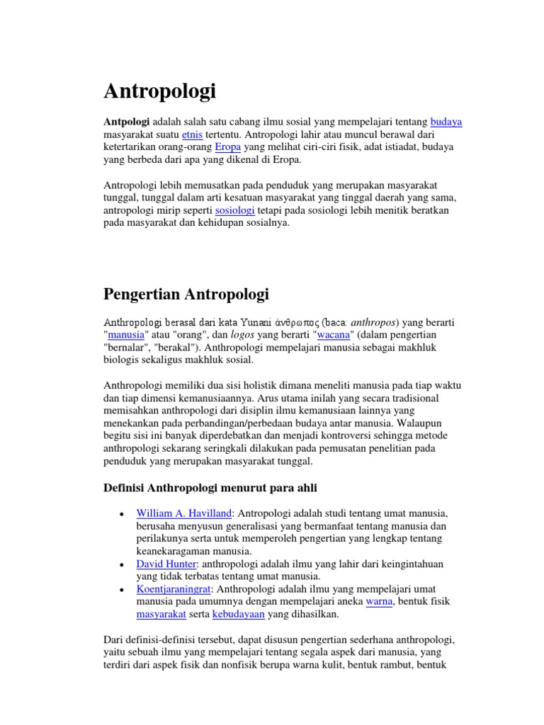 Pengertian Ilmu Sosial Menurut Para Ahli. Antropologi