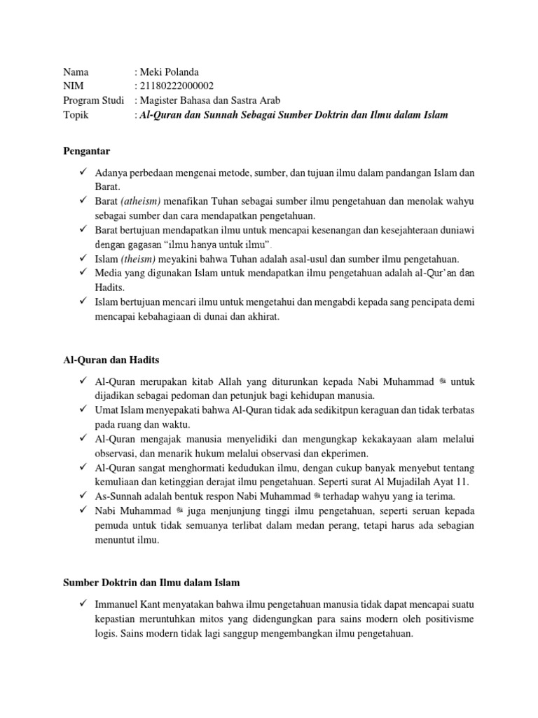 Sumber : ejournal.fiaiunisi.ac.id Alquran Dan Sunnah Sebagai Sumber Doktrin Dan Ilmu Dalam Islam