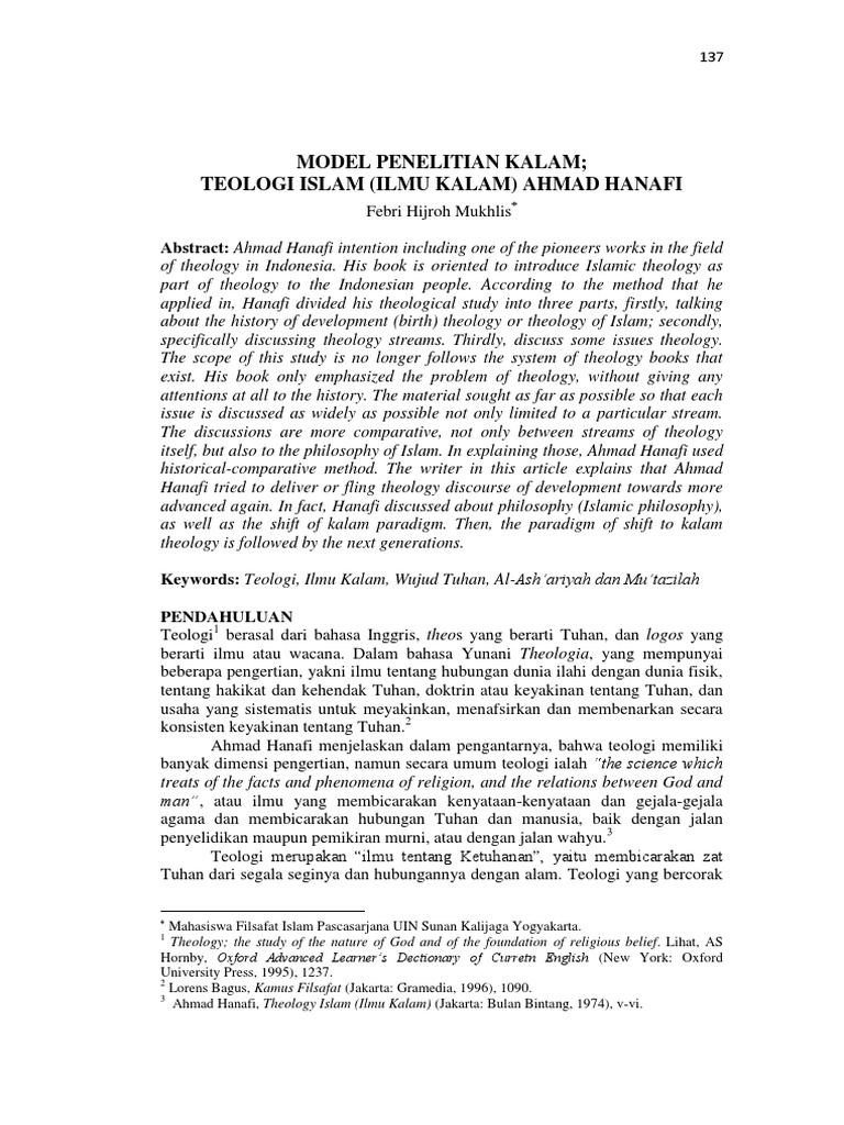 Pdf Model Penelitian Kalam Teologi Islam Ilmu Kalam