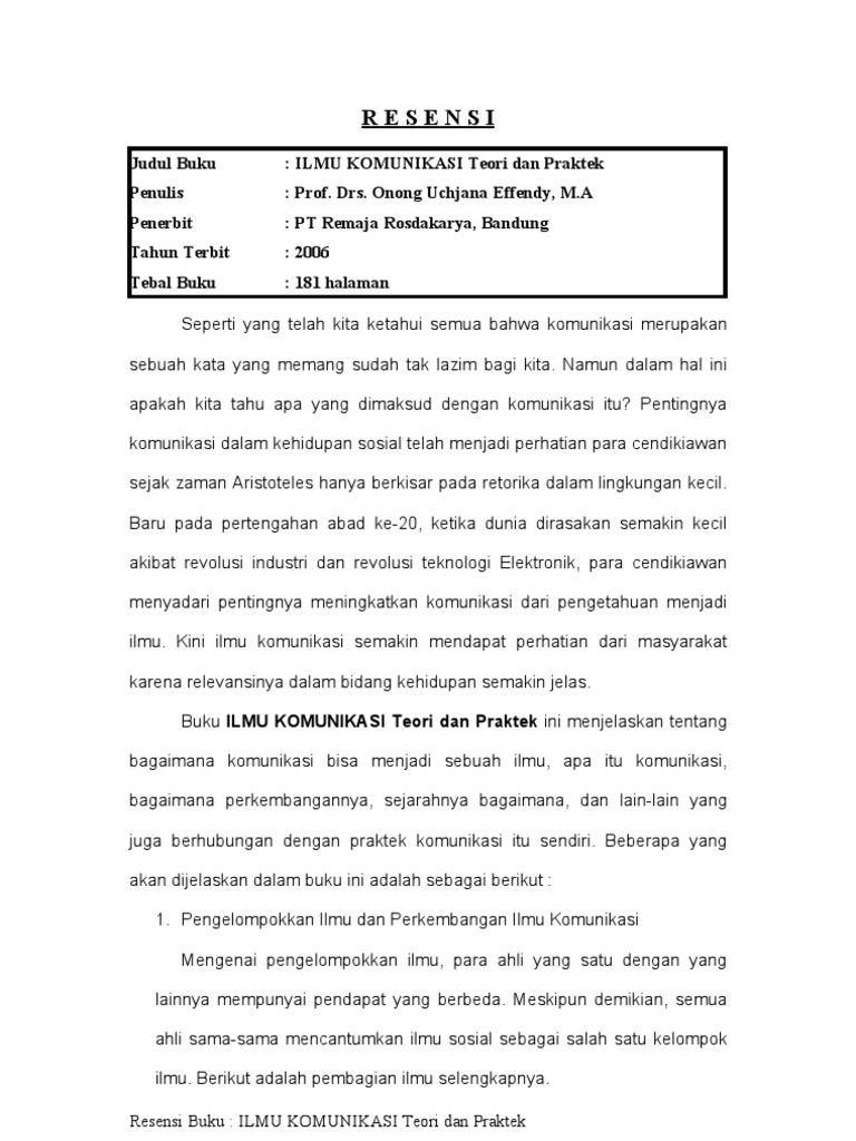 Sumber : academia.edu Resensi Buku Pengantar Ilmu Komunikasi