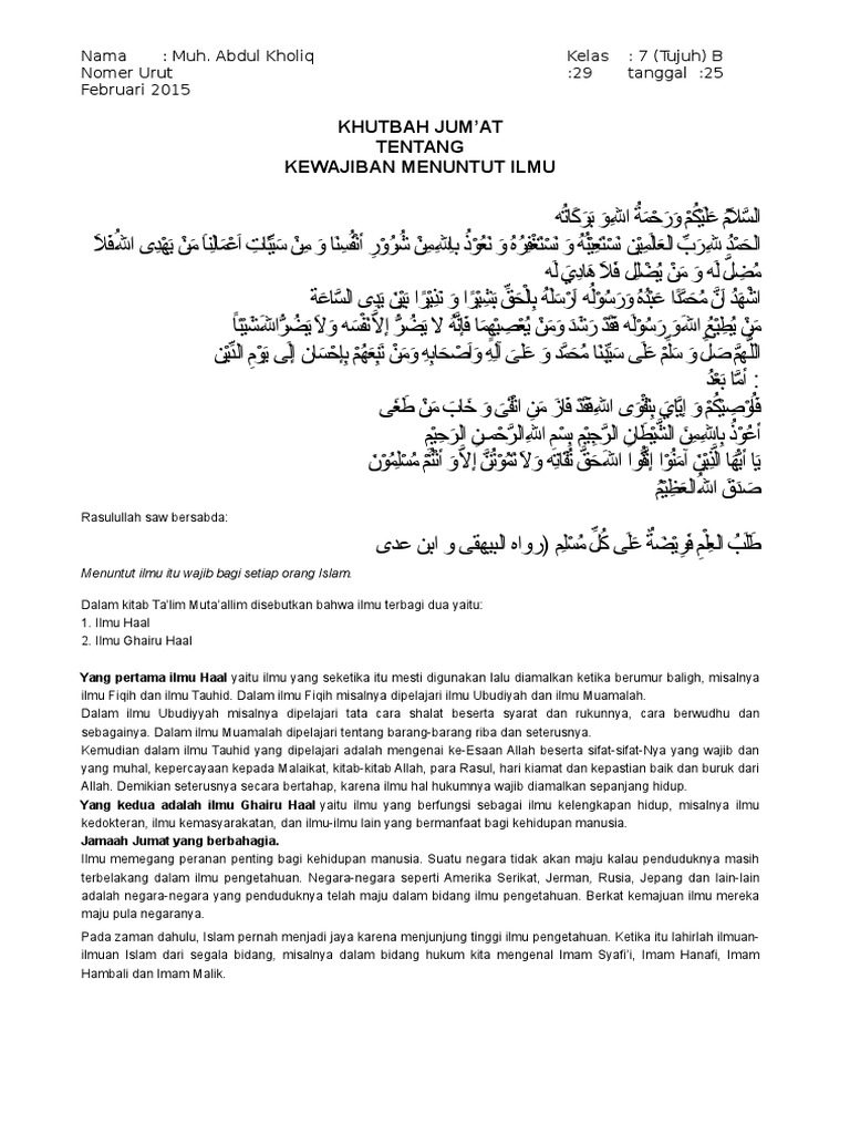Sumber : adoc.tips Khutbah Jumat Inilah Keutamaan Ilmu Agama Dan Cara Yang