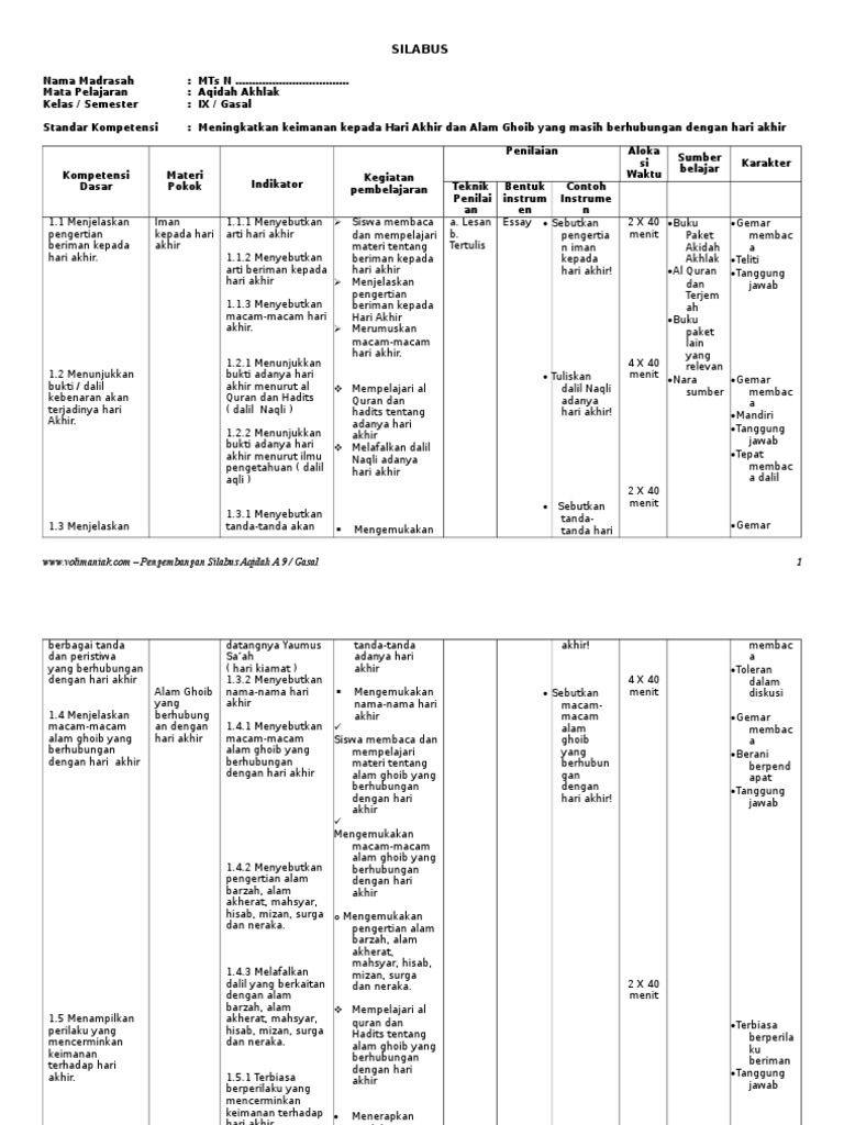 Sumber : gurupendidikan.co.id Silabus Aq Kelas 9