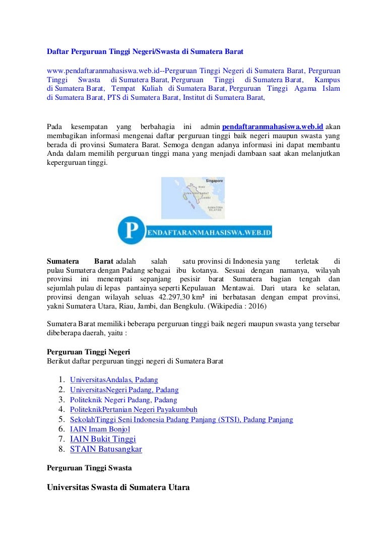 Sumber : vdocuments.mx Daftar Perguruan Tinggi Negeri Swasta Di Sumatera Barat