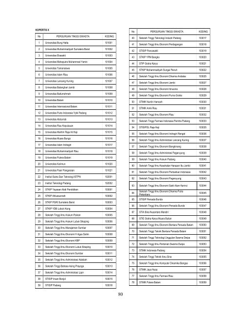 Sumber : mengetik.info No Perguruan Tinggi Swast