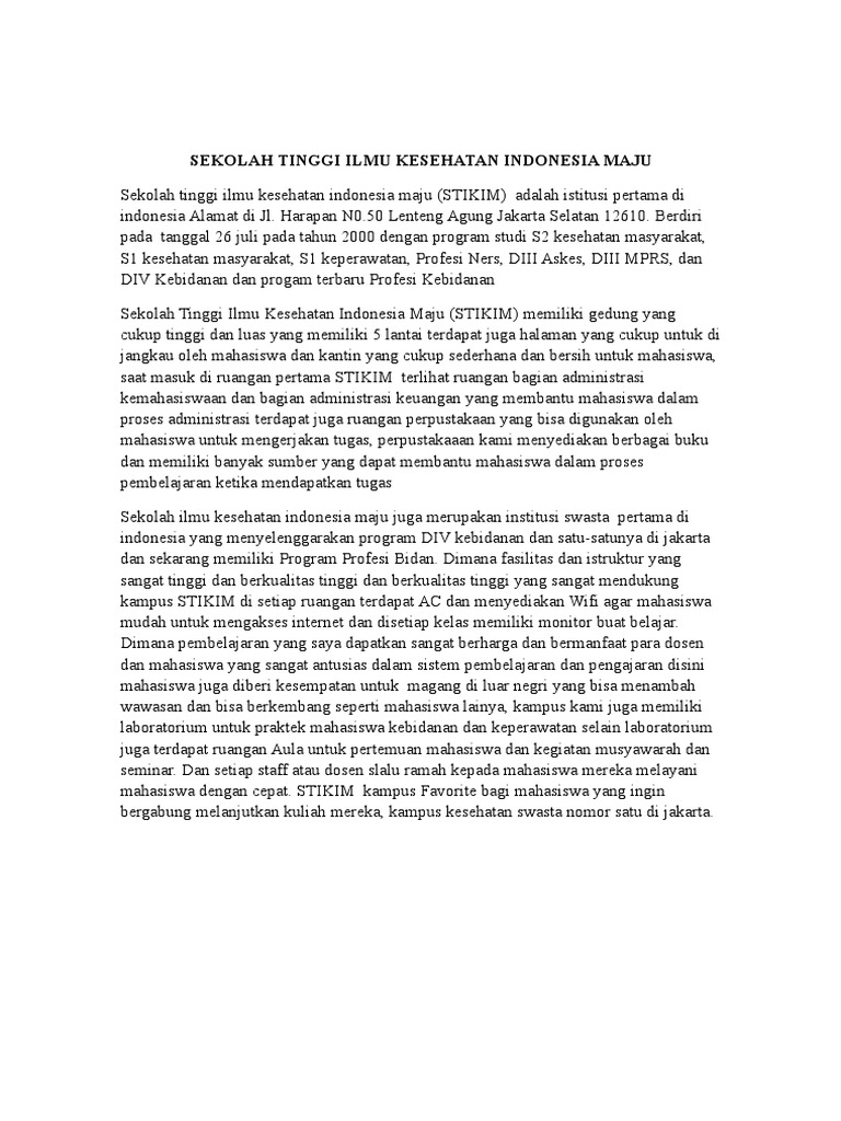 Sekian penjelasan yang bisa admin berikan mengenai sekolah tinggi ilmu kesehatan indonesia maju. Terima kasih telah berkunjung ke blog Terkait Ilmu 2019. Buka website sumber untuk pembahasan lengkapnya.