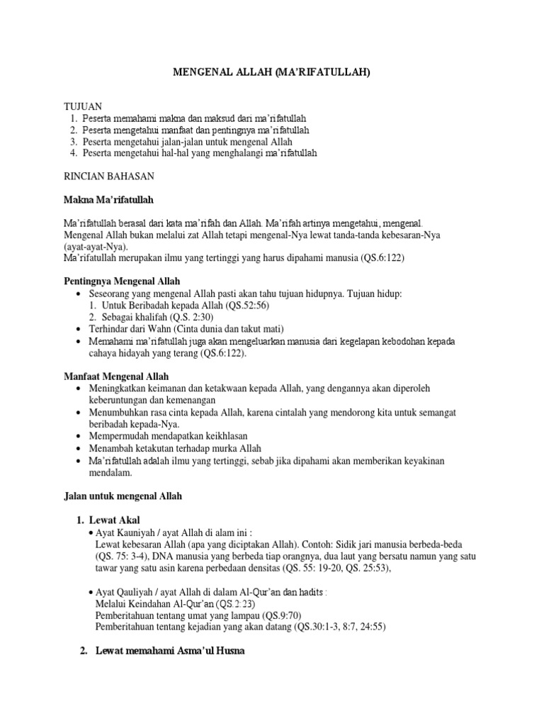 Sumber : id.scribd.com B Marifatullah Mengenal Allah Rasmul Bayan Tarbiyah
