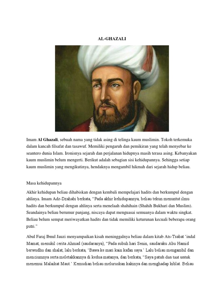 Sumber : scribd.com Ilmu Dunia Akhirat Kisah Imam Al Ghazali Menuntut Ilmu