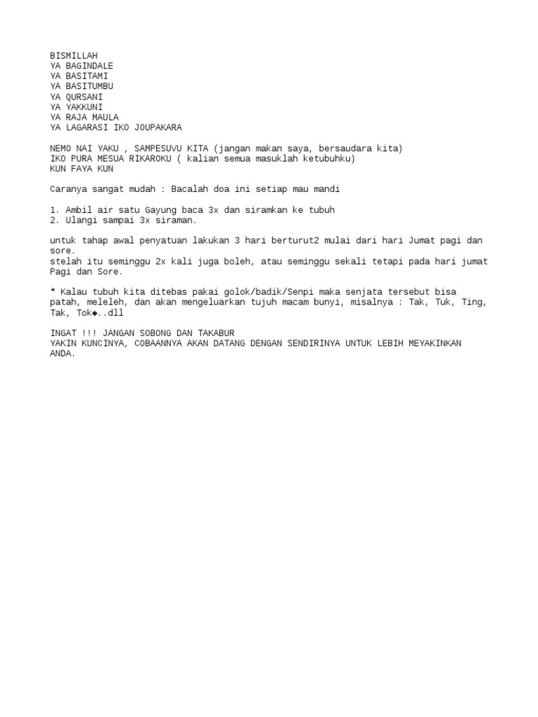 Sumber : idoc.pub Mantra Ilmu Kebal Langsung Jadi Aji Tameng Waja Wesi Kuning